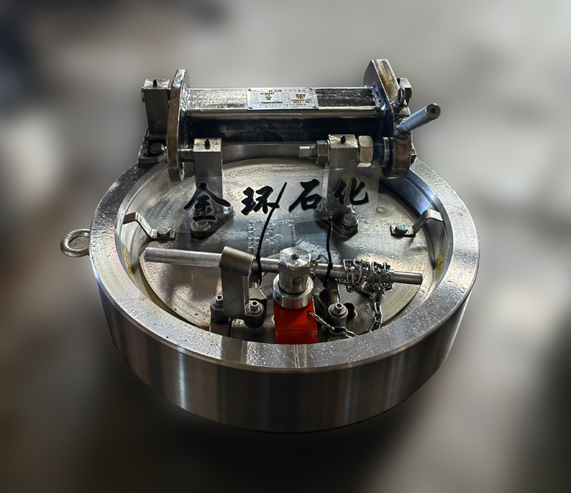 快開盲板是用于壓力管道或壓力容器的圓形開口上的一種機(jī)械裝置。一般由筒體法蘭、頭蓋、勾圈或卡箍、密封圈、安全聯(lián)鎖機(jī)構(gòu)、開閉機(jī)構(gòu)、轉(zhuǎn)臂及短節(jié)(需要時(shí))等部件構(gòu)成。